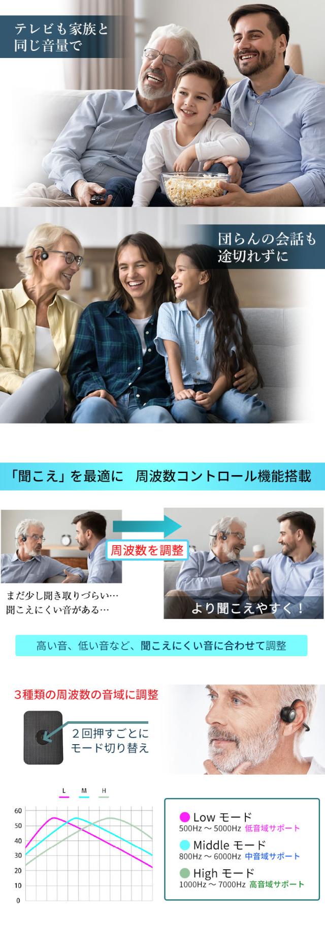 ・3段階の周波数コントロール機能で、聞き取りやすい音域に調整が可能