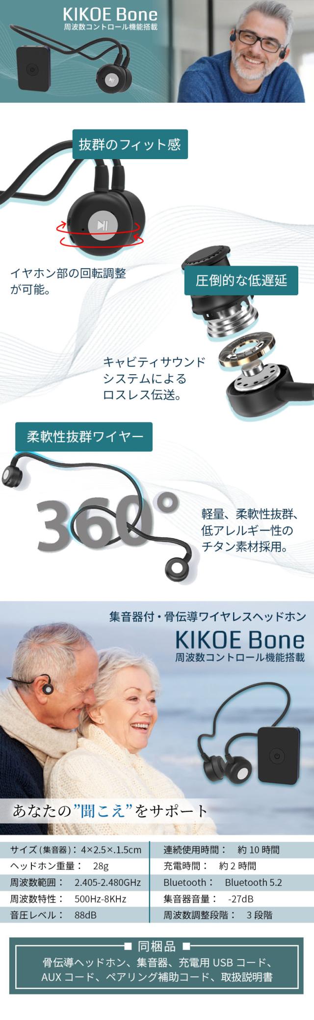 【17日まで! 35%オフクーポン配布中】集音器 骨伝導 ワイヤレス イヤホン KIKOE Bone キコエボーン 充電式 コードレス Bluetooth 周波数コントロール機能 高齢者 骨伝導 はっきり聞こえる集音器 補聴器 よく聞こえる集音器