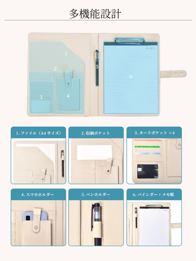 ファイル、収納ポケット、カードポケット×4、ペンホルダー、