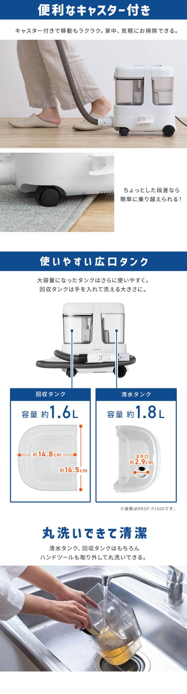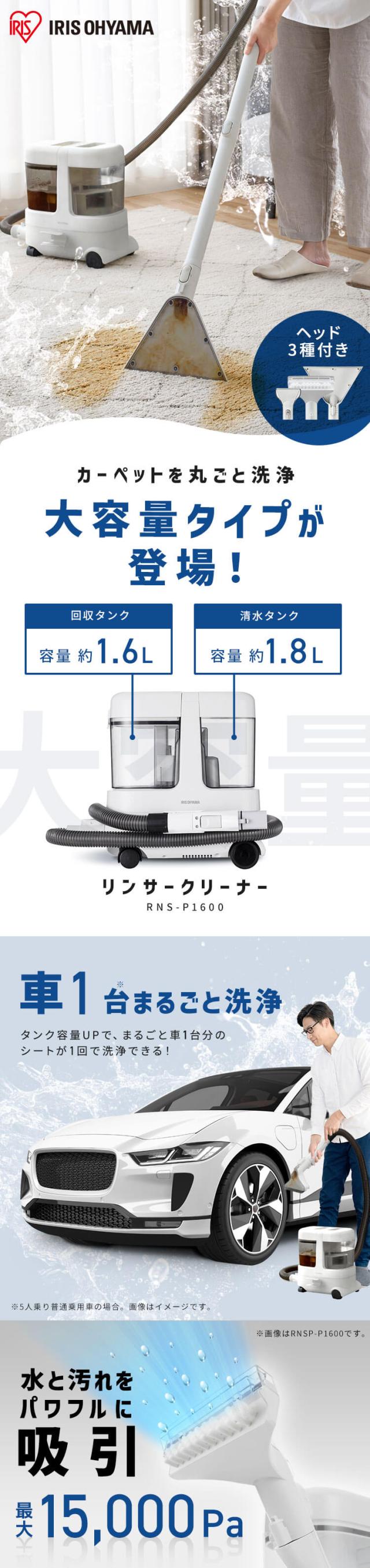 リンサークリーナー 車 カーペットクリーナー リンサー カーペット ノズル 絨毯 クリーナー 吸引力 布 洗浄機 家庭用 大容量 掃除機 大掃除 アイリスオーヤマ RNS-P1600 * 送料無料
