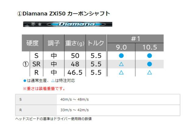 ・シャフト:DiamanaZXi50カーボンシャフト(S:50g)、中調子