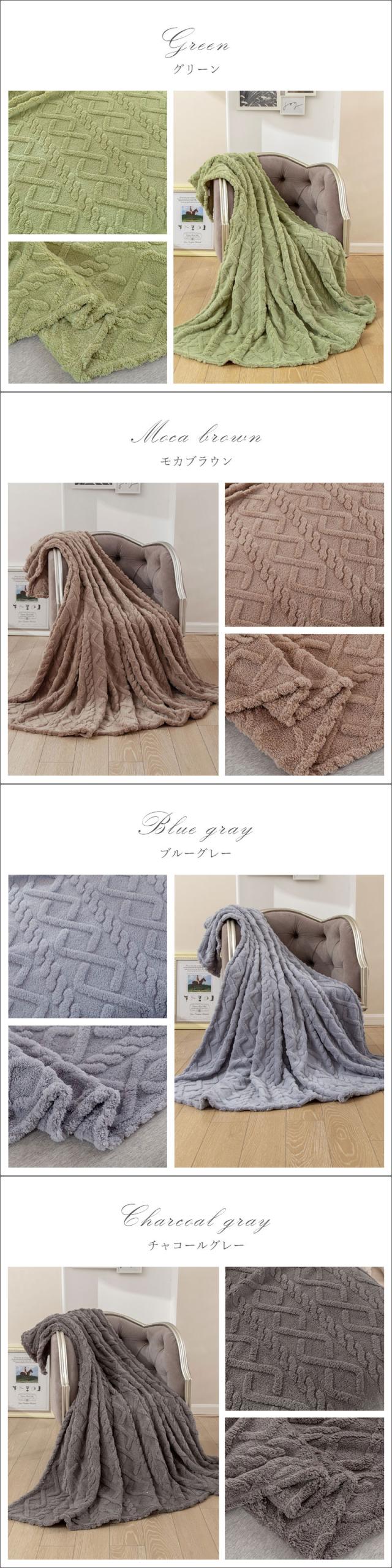 | 商品 特徴 | 【保温性】 編み目が細かく毛が密集しているので、暖かく保温性があります。 【通気性】 保温性だけでなく通気性もあるので、より快適にご使用いただけます。 【オシャレ】 立体的なニット柄にデザインがかわいい、やわらかで肌触りのよい毛布です。 【水洗いOK】 水洗いOKでお手入れしやすく、汚れても洗えるので清潔に使用が可能。 【薄手でコンパクト】 薄手なので使用しない時も嵩張らず、持ち運びにも便利です。 |