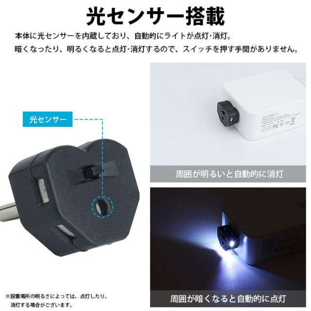 本体に光センサーを内蔵しており、自動的にライトが点灯・消灯。