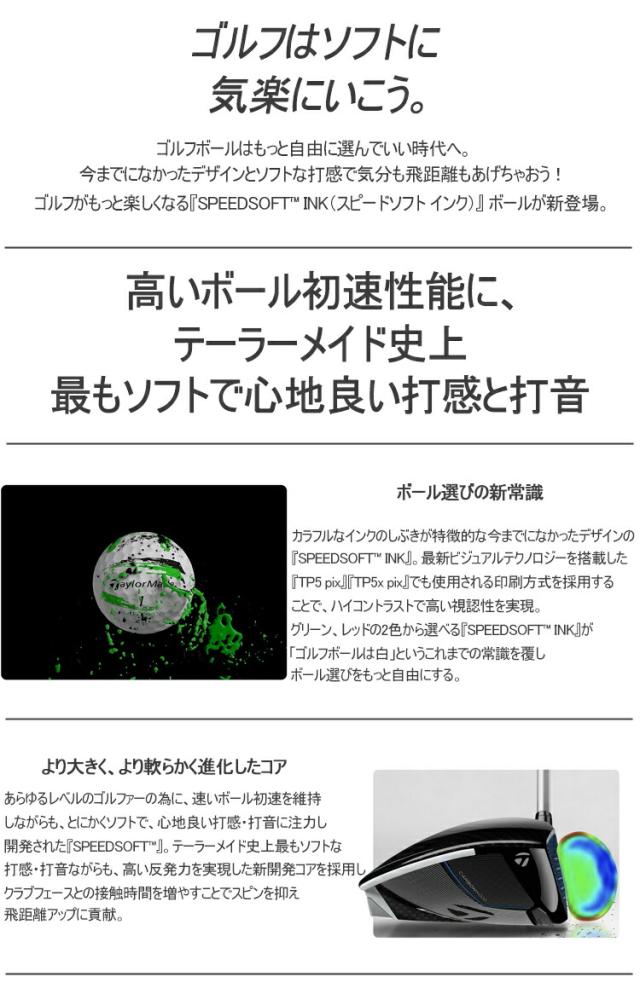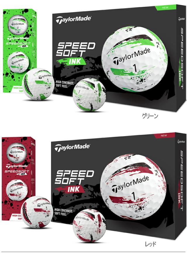 テーラーメイド スピードソフト インク ゴルフボール 1ダース12個入り 「TaylorMade SPEEDSOFT INK グリーン、レッド」 2024年モデル日本正規品
