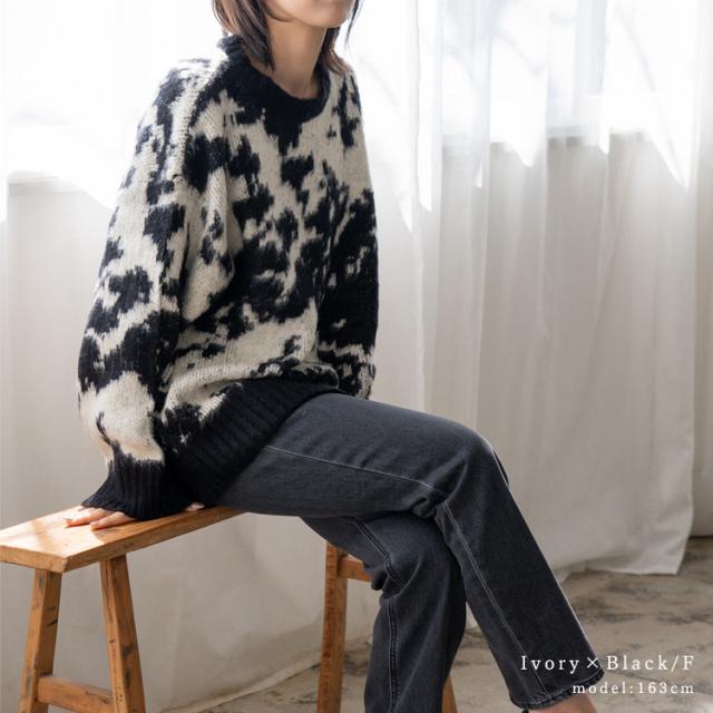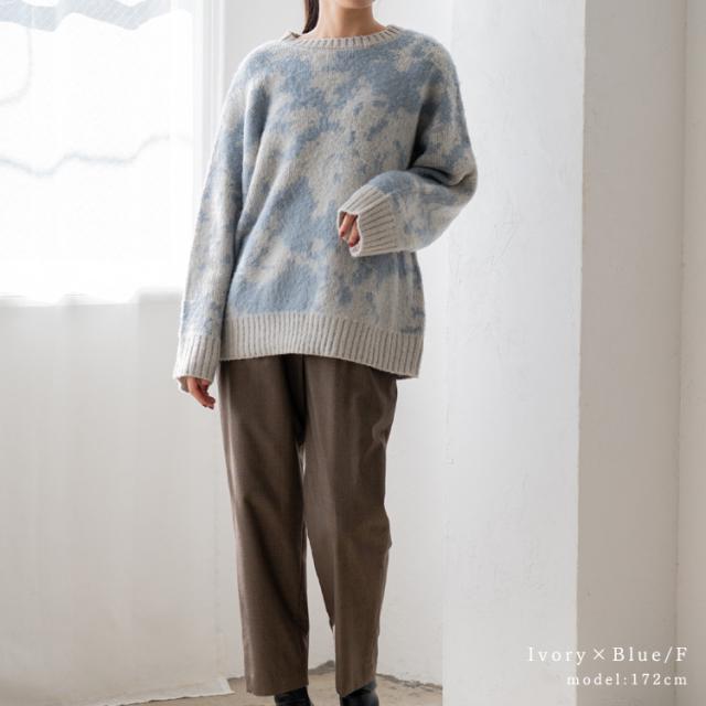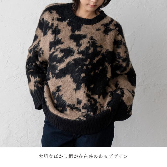 sale ニット レディース 長袖 ジャカードニット モヘアニット クルーネック プルオーバー 大人 セーター シンプル ラウンドネック 長袖 ドロップショルダー オーバーサイズ 細見え 定番 大きいサイズ ゆったり 体型カバー ワイドシルエット 柔らかい blc-x77015 新生活