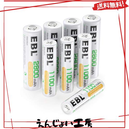 EBL 単3・単4電池セット 単3電池 充電式 2800mAh4本+単4電池 充電式1100mAh4本パック 約1200回繰り返し充電可能 電池収納ケース付き