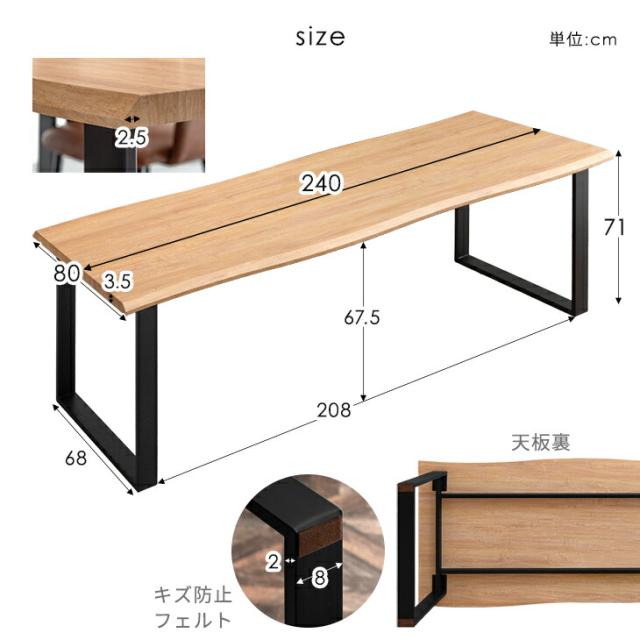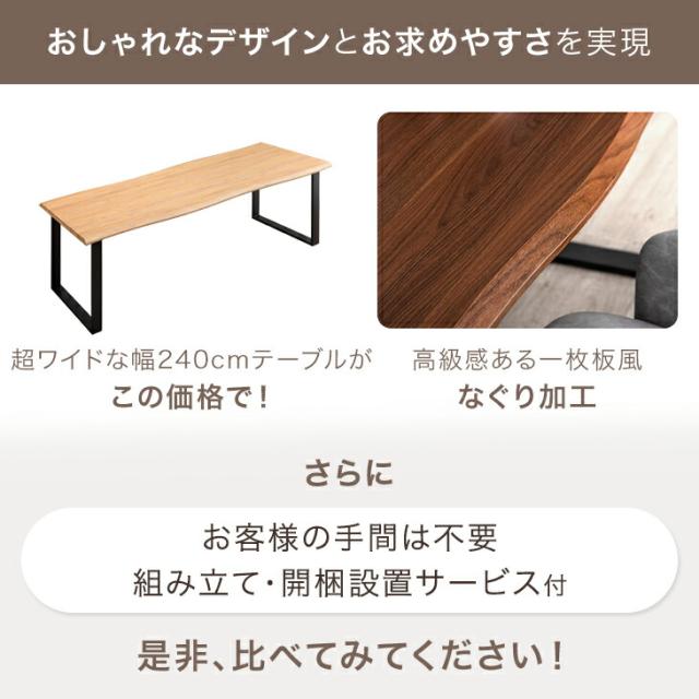 240cm ダイニングテーブル 単品 8人掛け 長方形 ダイニング テーブル 食卓テーブル 240 幅240 8人 8人掛 8人用 大きい 大きめ 大人数 大人数用 おしゃれ 木製 木 ウッド 黒脚 【超大型】【後払/時間指定NG】