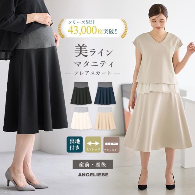 スカート マタニティ 妊娠服 服 フレアスカート ストレッチ ジョーゼット 通勤 オフィスカジュアル オケージョン エンジェリーベ ANGELIEBE