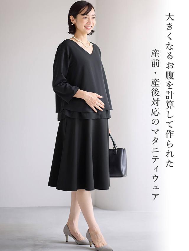 クラス感があるストレッチジョーゼット素材は、通勤コーデや学校行事などのオケージョンにも大活躍。らくちんなのにきちんと感を演出できる万能アイテムです。上品に広がるフレアスカートは、程よいボリューム感がお腹のラインをカバーしながらやさしい雰囲気も演出。ジャケットなどにも合わせやすく、膝が隠れる丈に仕上げました。