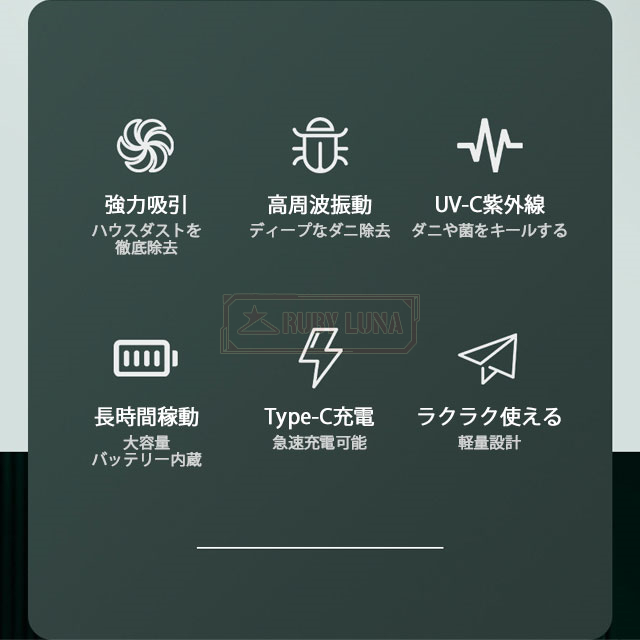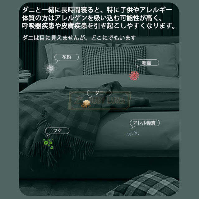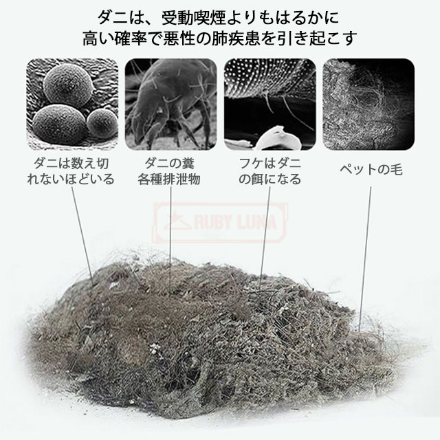 | 特徴 | ◆掃除機よりキレイに!天日干しよりもずっと気持ちいい!! ◆掃除機がけやふとんを干すだけでは布団のハウスダストは取り除けません。 ◆寝具に潜むダニや人のフケは体内に取り込まれるとアレルギーの原因になります。 ◆当製品なら、天日干しや掃除機かけで取りきれない細菌やハウスダストをしっかりと除去します! |