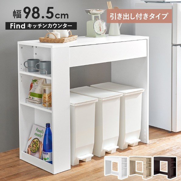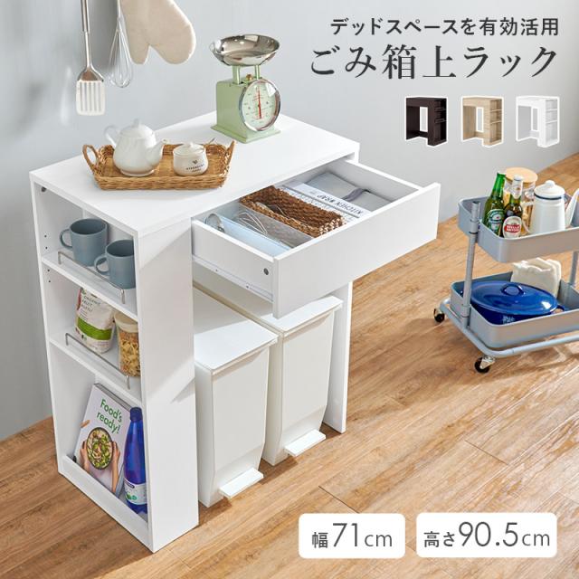 ゴミ箱上ラック 幅71 キッチンカウンター キッチン収納 レンジ台 キッチンラック スリム ゴミ箱上収納 ラック 収納棚 レンジ台 作業台 ファインド カウンターテーブル ゴミ箱 おしゃれ 収納 白 引き出し 木
