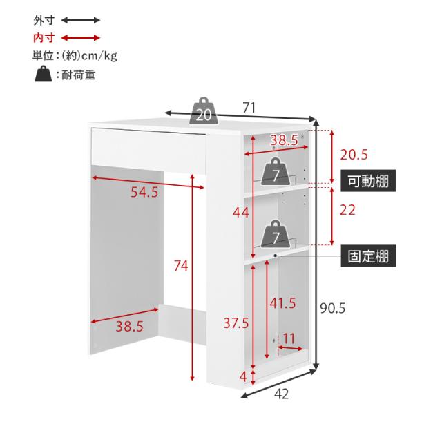 【商品サイズ(約)】幅71×奥行42×高さ90.5cm