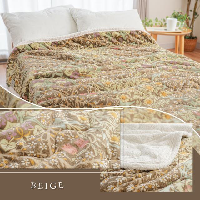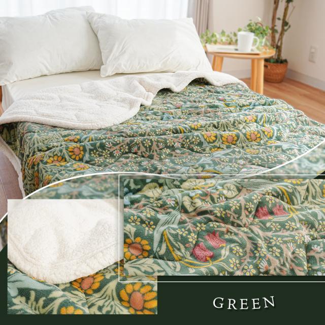 [ keyword | 西川 キルトケット シングル 140×200cm ボア 毛布 モリスギャラリー ブラックソーン 洗える 秋 冬 グリーン ベージュ シープボア あったか あたたかい 節電 ケット ]