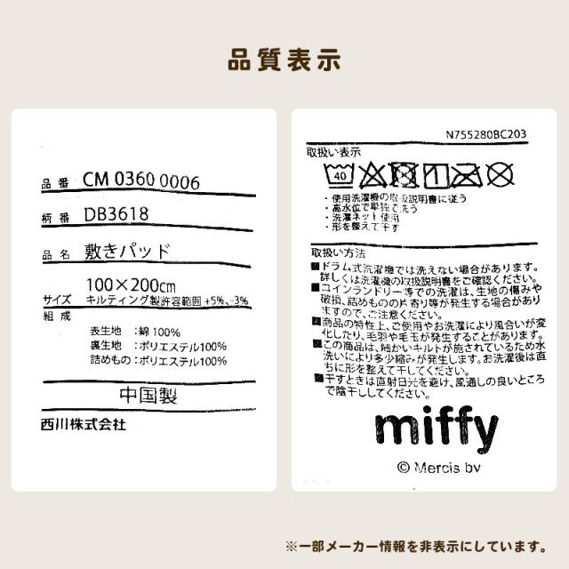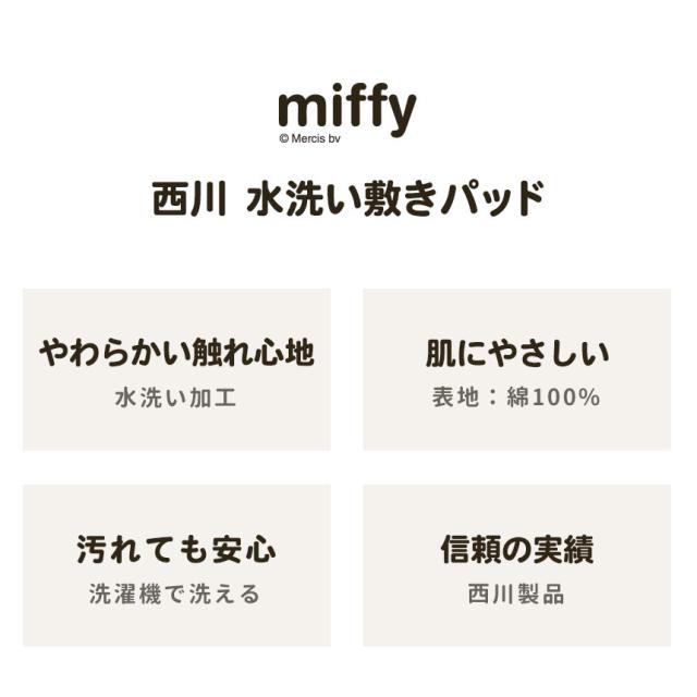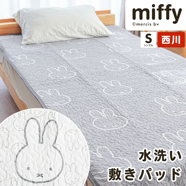 [ keyword | 敷きパッド シングル ミッフィー キャラクター 西川 敷パッド 綿100% 水洗い加工 水洗い ポコポコ キルト オールシーズン 洗える 丸洗い miffy かわいい シンプル 子ども部屋 ホワイト グレー ブルーナ ]