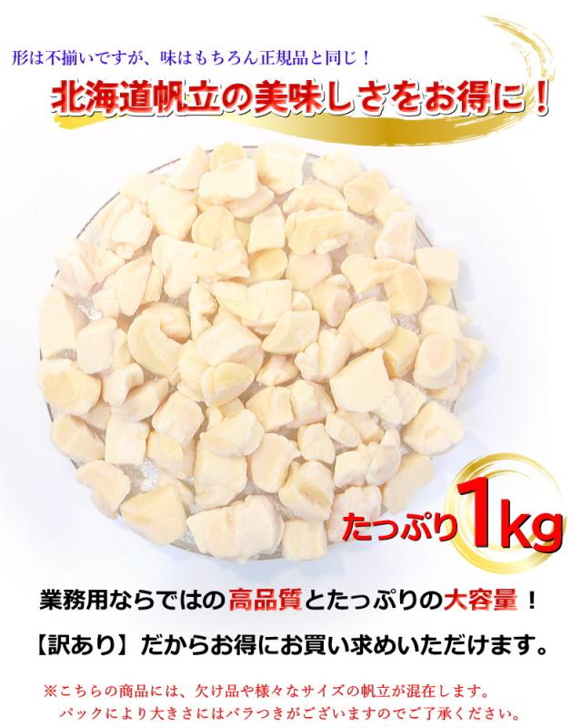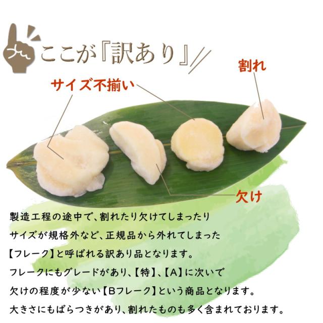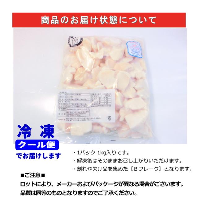 北海道産 帆立貝柱 刺身用 訳あり 不揃い・欠け 1kg ホタテ ほたて 帆立 訳あり・ホタテ貝柱【Bフレーク】・