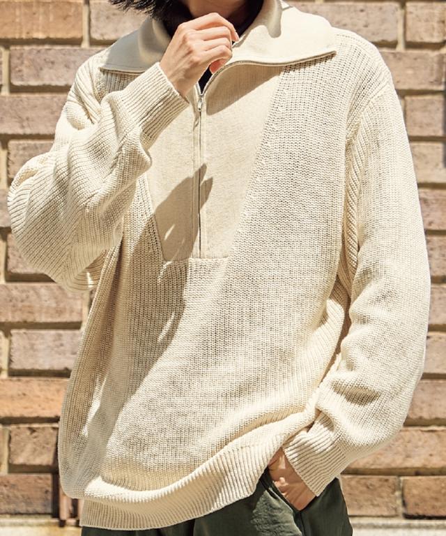 ローゲージでざっくり編み込まれたジップアップセーター。ジップを上げる位置や合わせるインナーによって印象が異なり、さまざまなアレンジが可能です。 大きいサイズも展開しております。(M/L/LL/3L/4L/5L/6L/8L/10Lサイズ) ■デザイン フロントのファスナーがレイヤードスタイルの着こなしのポイントに。 その日の気分でファスナーの開け具合を調整出来るコーディネートが楽しめます。 ■素材 ざっくりした綿混の糸を使用したローゲージニット ■おすすめのおしゃれスタイリング インナーにハイネックトップスを合わせて襟元のレイヤードスタイルも楽しめます。 ジョガーパンツやワイドパンツと相性抜群