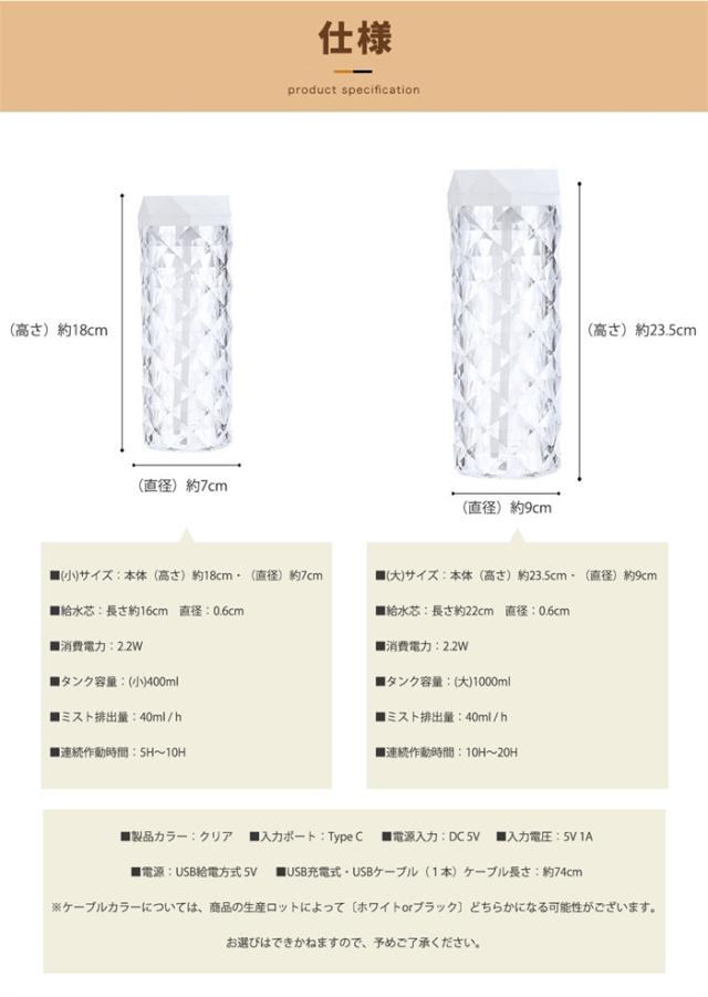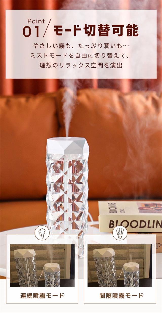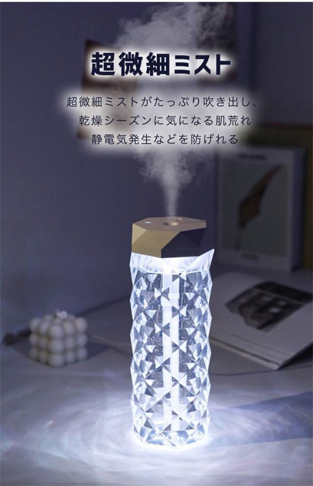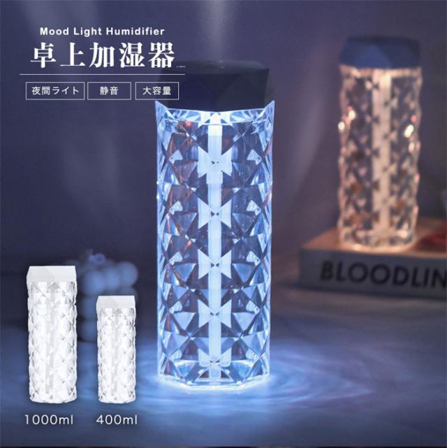 加湿器 大容量 1000ml 卓上加湿器 RGBムードライト付き 卓上型 ミニ加湿器 超音波式 コンパクト 小型?USB超音波 ミスト加湿器 USB 加湿器 空気加湿器 オフィス 静音 小 RGB 七色ライト 夜間ライト カラフル 寝室 オフィス クリスタルボトル おしゃれ 乾燥対策
