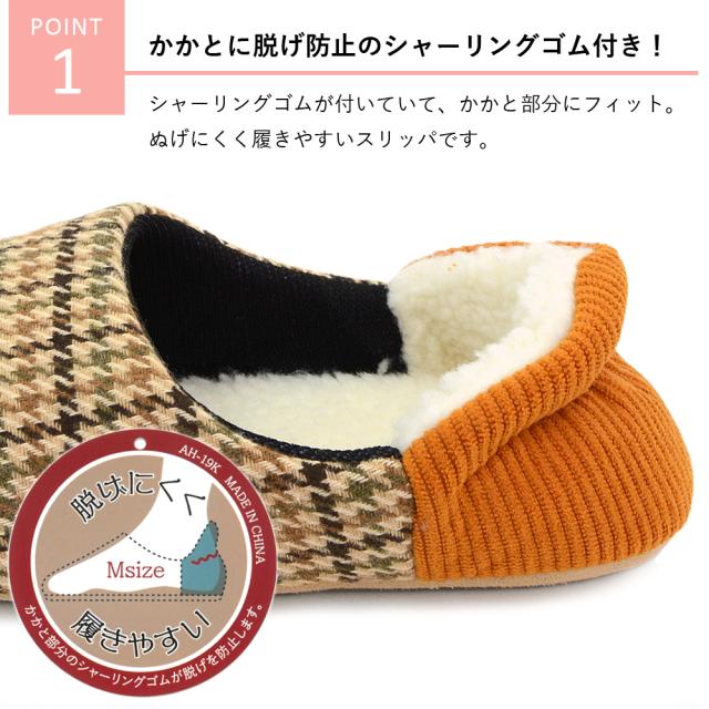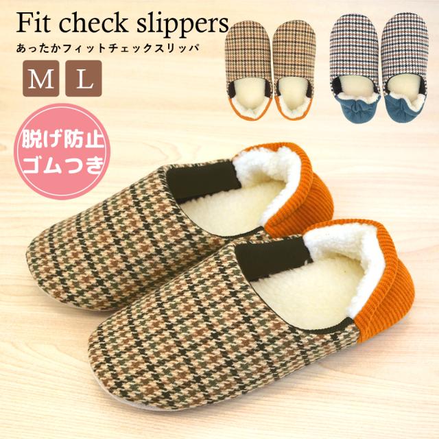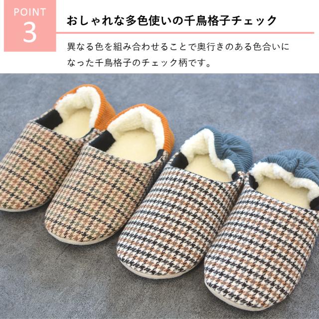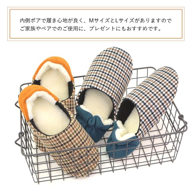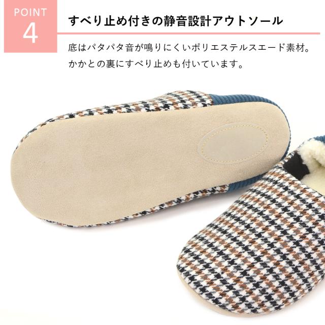 ボア ファー スリッパ ふかふか もこもこ 滑り止め付き かかとゴム付き 脱げにくい 歩きやすい 千鳥格子 チェック ルームスリッパ M L ルームシューズ メンズ レディース 軽量 オシャレ 部屋履き 室内履き 秋冬 春先 かかとにフィット! agesugi_snk