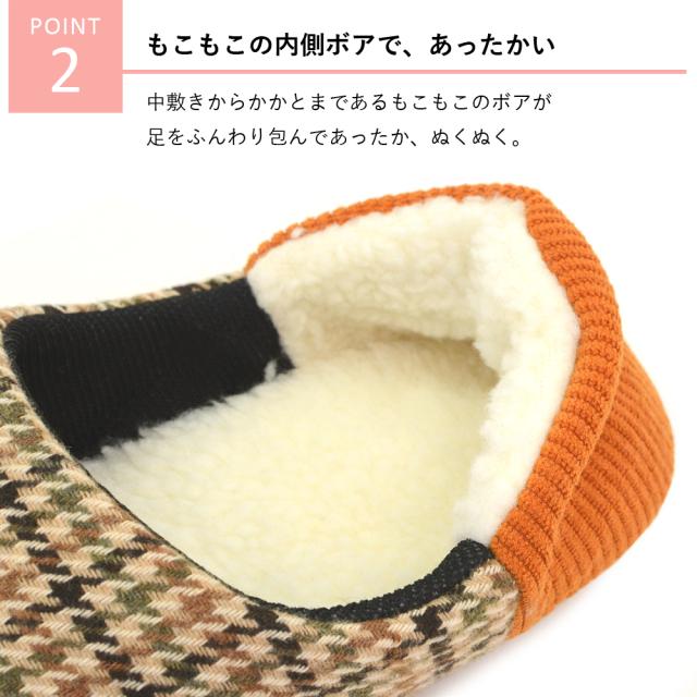 中敷&かかとの内側がもこもこのボアなので、あったか、やわらかな履き心地。