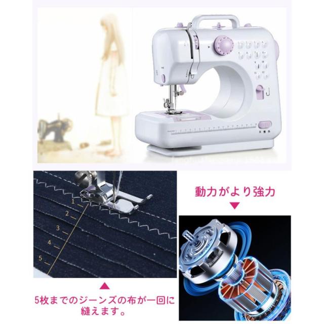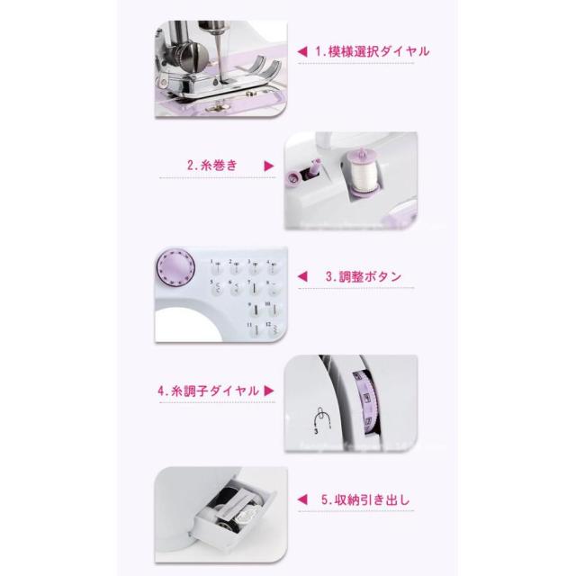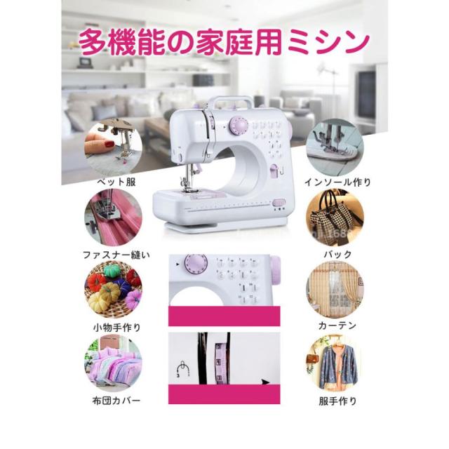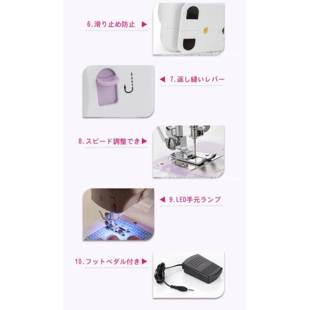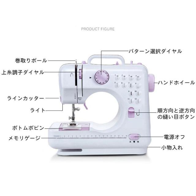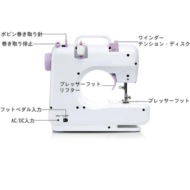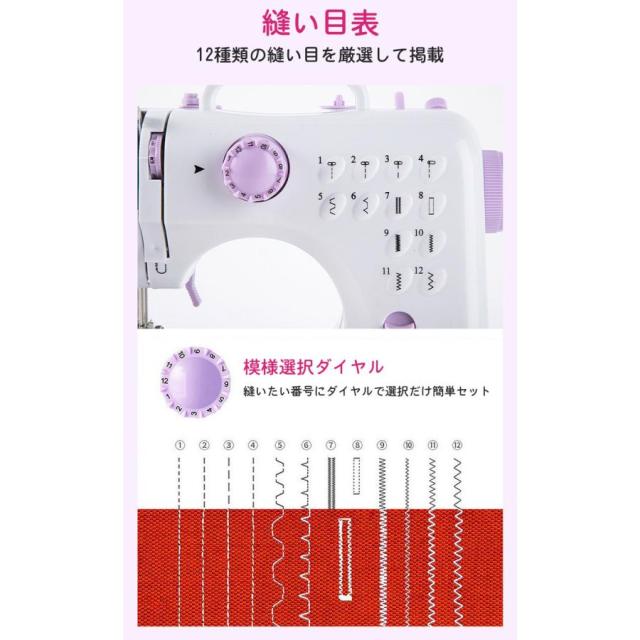 【短納期】電動ミシン コンパクト 小型ミシン 家庭用ミシン 初心者 12種類の縫い目 フットコントローラー LED手元ランプ付き ACアダプタと単三電池 新生活応援