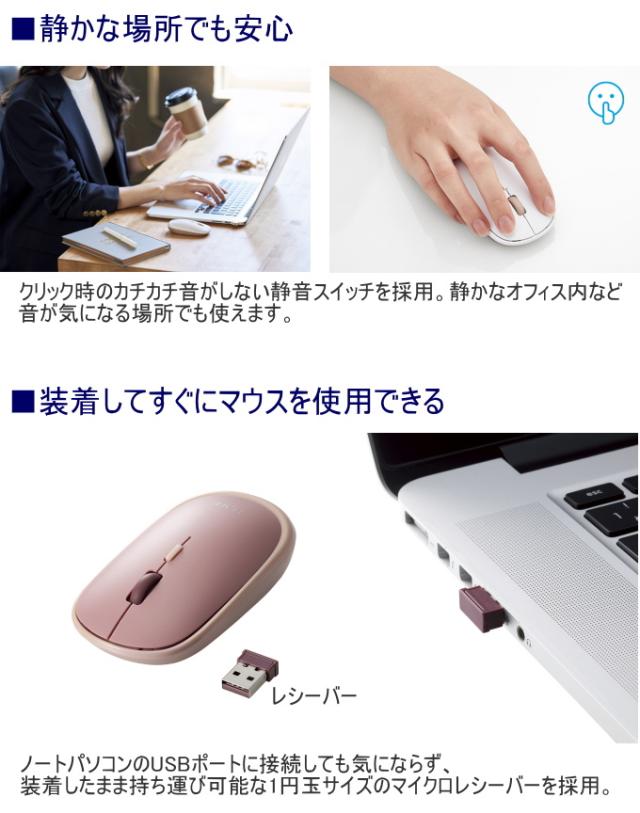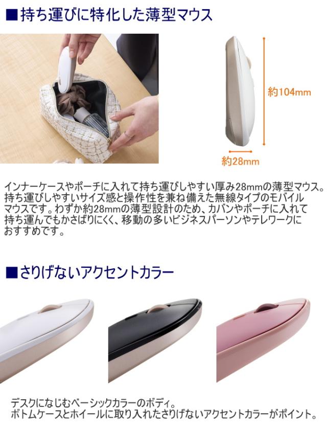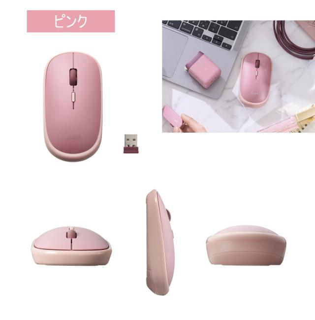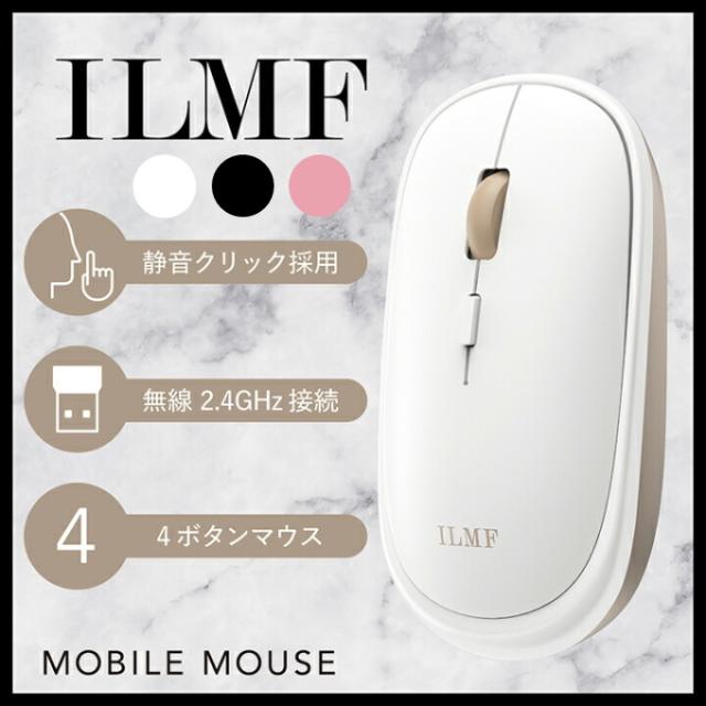 ILMF 2.4GHz無線 薄型マウス ワイヤレス 4ボタン 薄型 静音 パソコン ブラック ホワイト ピンク エレコム