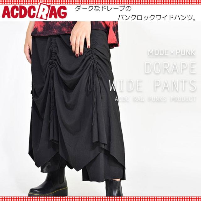 ACDC RAG エーシーディーシーラグ Dワイドパンツ パンク ロック ファッション V系 病みかわいい 病み レディース メンズ ウエストゴム ブラック jr-262