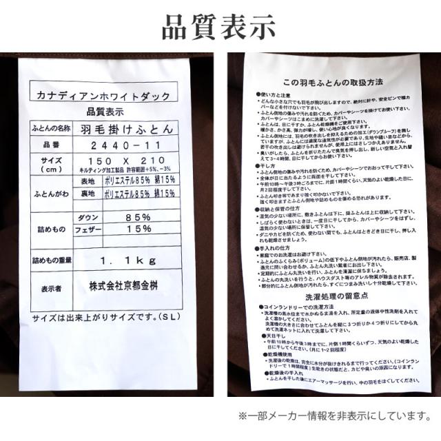 | その他注意 | ■お洗濯可能の羽毛布団ですが、頻度高くお洗濯すると劣化に繋がります。シーズン終わりなど、年間1回程度の頻度でのお洗濯をおすすめしております。 |