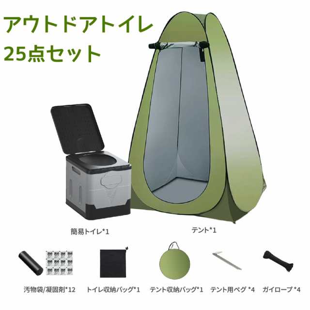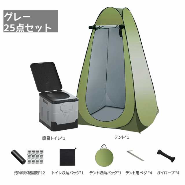 【25点セット】簡易トイレ 災害用 テント セット 着替え用テント グッズ ポータブルトイレ 簡易更衣室 折り畳み式 組み立て簡単 簡易 携帯 送料無料