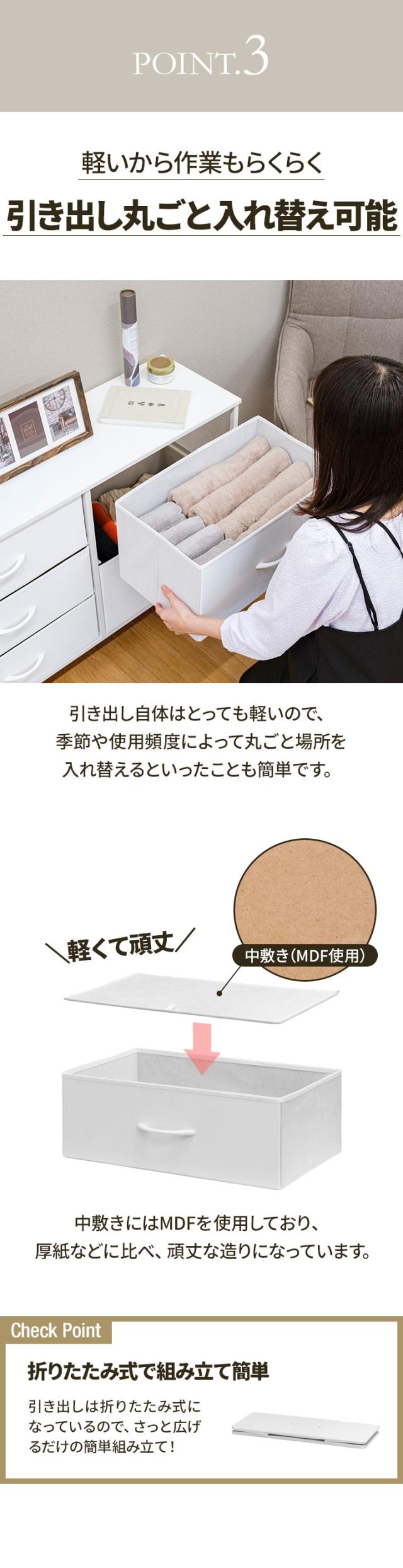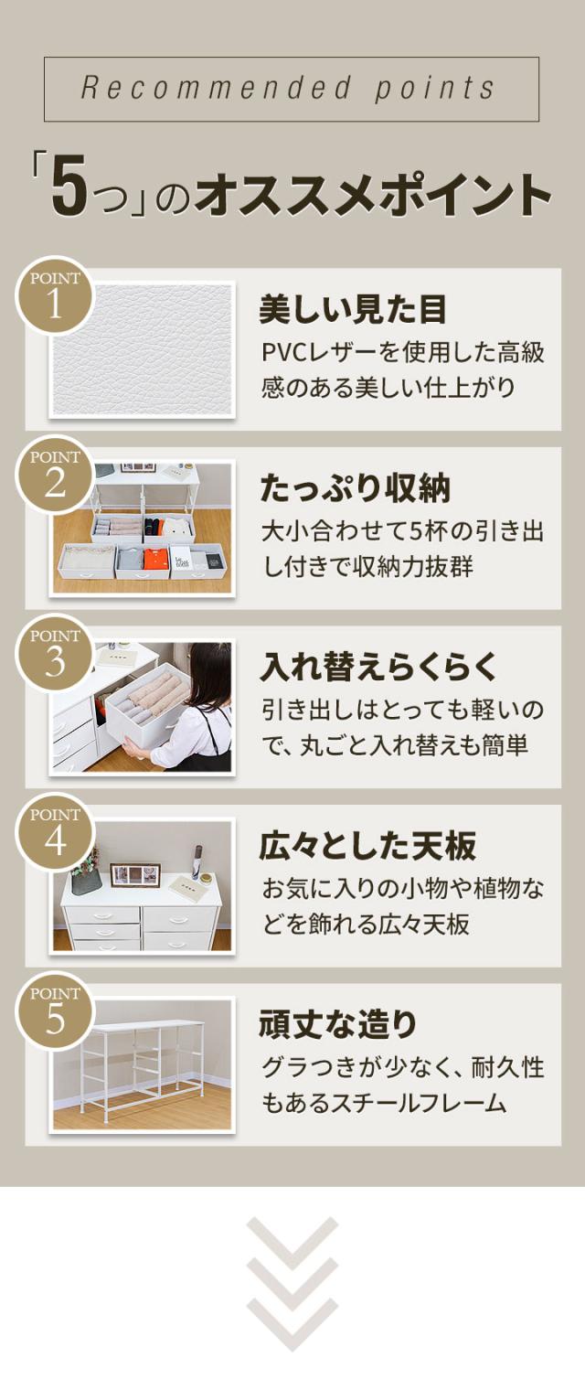 チェスト ローチェスト タンス たんす 箪笥 洋服箪笥 キャビネット ローキャビネット 引き出し クローゼット収納 押し入れ収納 クローゼット下段 押し入れ下段 下段 サイドボード テレビボード TVボード サイドチェスト リビングチェスト ランドリーチェスト リビング収納 収納家具 洋服収納 衣類収納 収納 収納用品 アパレル収納 ファブリック収納 子供用収納 子供収納 子供部屋収納 おもちゃ収納 家具 収納家具 ファニチャー ストレージ 白 ホワイト 3段 三段 2列 二列 5杯 レザー調 レザー 革 合皮 フェイクレザー リビング 居間 子供部屋 寝室 クローゼット ウォークインクローゼット ウォークイン 押し入れ 押入 玄関 廊下 ロフト 洋服 衣類 アパレル ファブリック 北欧 韓国 脚付き シンプル モノトーン モノクロ 無地 馴染む 馴染みやすい 使いやすい 取り外し 取り外し可能 取り出し 入れ替え 衣替え 新生活 スッキリ すっきり ミニマリスト 天板 ディスプレイ 飾り 飾れる 棚 飾り棚 植物 花瓶 絵画 写真 テレビ TV 雑貨 おしゃれ かっこいい かわいい モダン インテリア 簡単 インテリア・寝具・収納 収納家具 タンス・チェスト