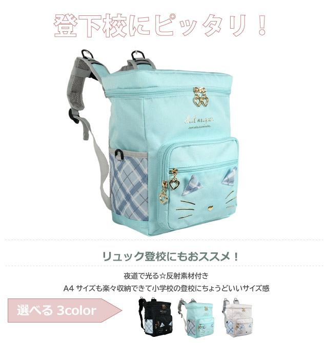 塾バッグ リュック ポケットねこ スクエアリュック mtb-2481 小学生 高学年 女の子 A4 小学校 低学年 リュックサック 修学旅行 林間学校 学童 通学バッグ 女子 新学期 入学 小学校 スポーツ 部活 通学カバン 遠足 黒 グレー 水色 ネコ サブバッグ 通学リュック