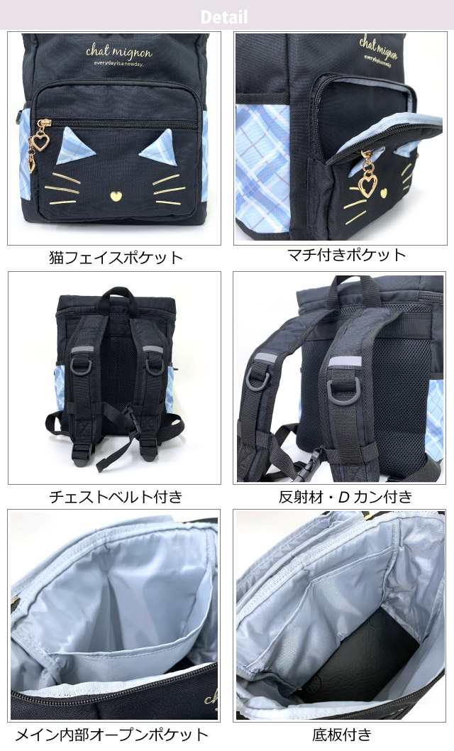■イメージ・その他:おしゃれ かわいい お洒落 おすすめ 人気 通販 可愛い ガール girl ブラック 黒 韓国 韓流 オルチャン 韓国バッグ a4対応 a4 大きい 大きめ 大容量 通学リュック 黒 ブラック 水色 グレー チェック チェック柄 ねこ ネコ 猫 リュック登校 入学 新学期 入学準備 反射材 リフレクター チェストベルト サブバッグ 塾リュック