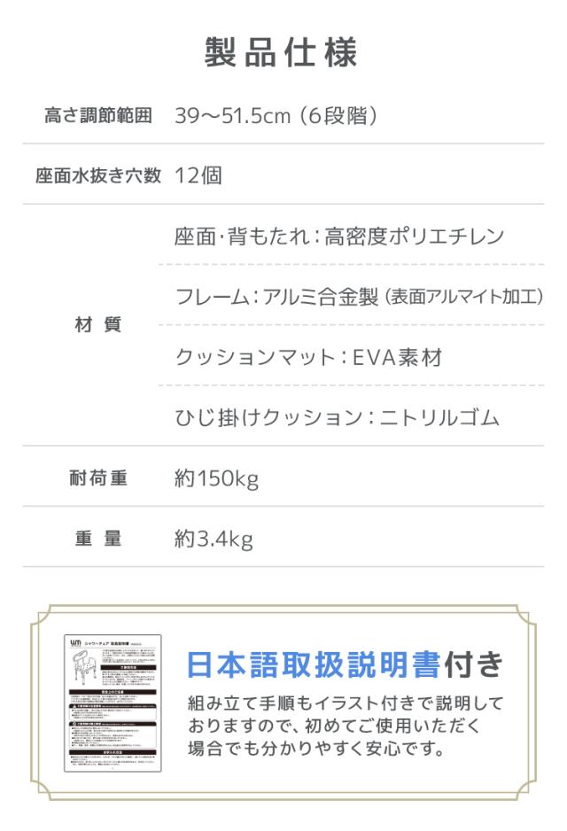 | 内容 | 背もたれ肘掛け付きシャワーチェア 日本語取扱説明書 |