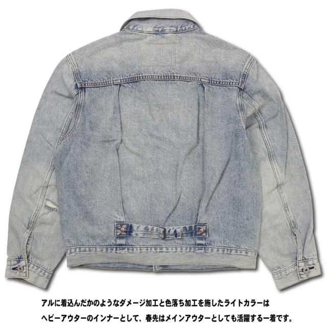リアルに着込んだかのようなダメージ加工と色落ち加工を施したライトカラーは