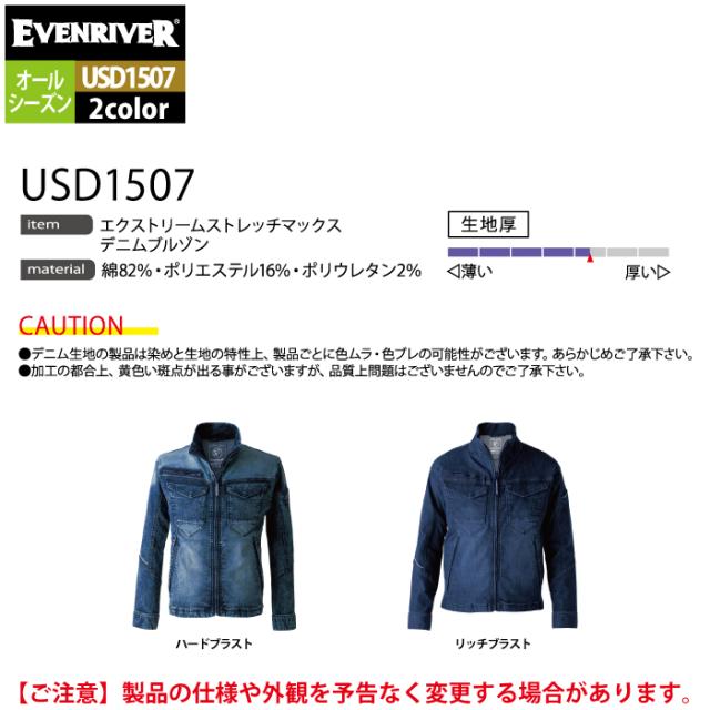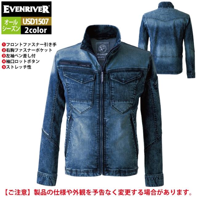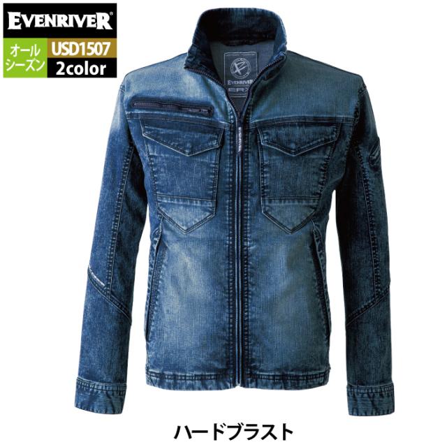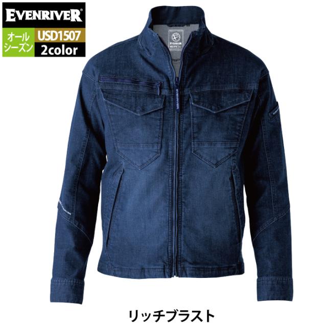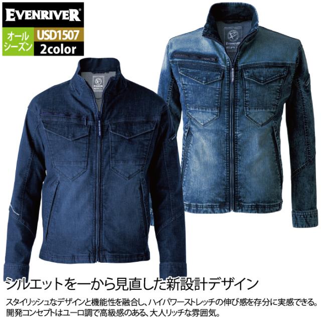 イーブンリバー EVENRIVER 作業服 2024秋冬新作 USD1507 エクストリームストレッチMAXデニムブルゾン 4L 春夏秋冬 作業着 おしゃれ