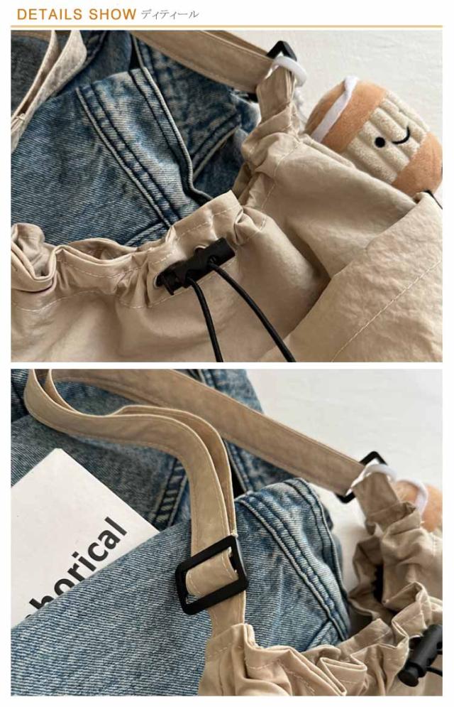 - 色味も形も画像通り、とても可愛いです。シャカシャカした素材で、汚れにも強く、丈夫そう。容量も、必要最低限の荷物がちょうど収まり、使いやすいです。紐は調整できるので、画像のように長くする事も可能。最大に...