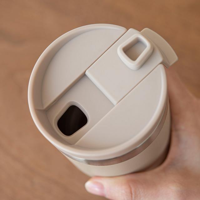 「もっと自然な飲み心地を」というテーマで、自然に、心地よく飲める飲み口を目指して開発された真空タンブラー。飲み口穴を可能な限り大きくし、飲み物の香りをしっかりと楽しめる。
