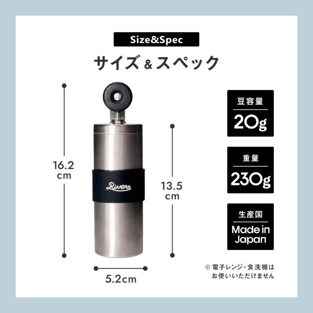 リバーズ Rivers コーヒーグラインダー コーヒーミル 手動 豆挽き 120ml 手挽き 持ち運び 携帯 グリット2 CF008