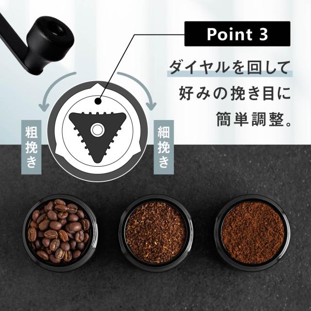 粗挽き-細挽きまでダイヤルで簡単に調節できます。