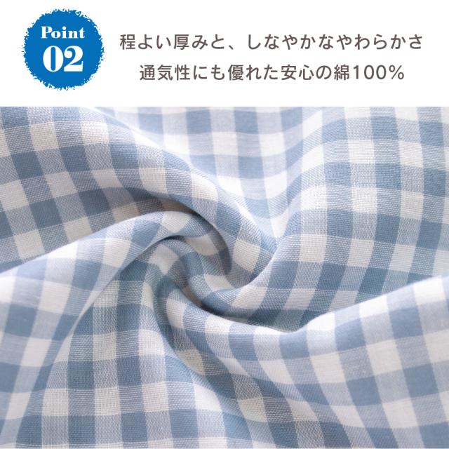 吸水性がよい綿100%のガーゼを2枚合わせにして、ふっくらと仕上げました。