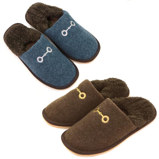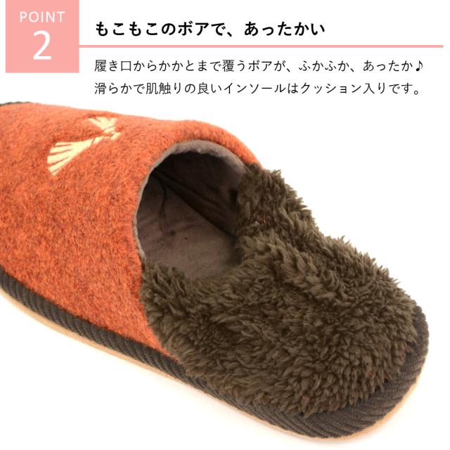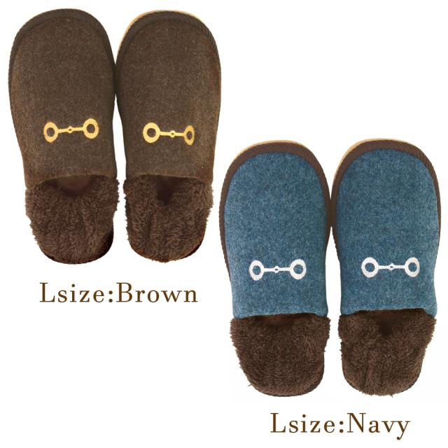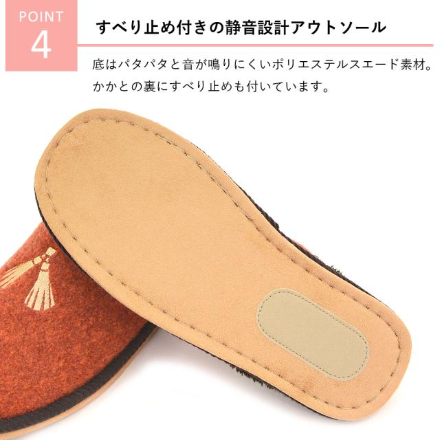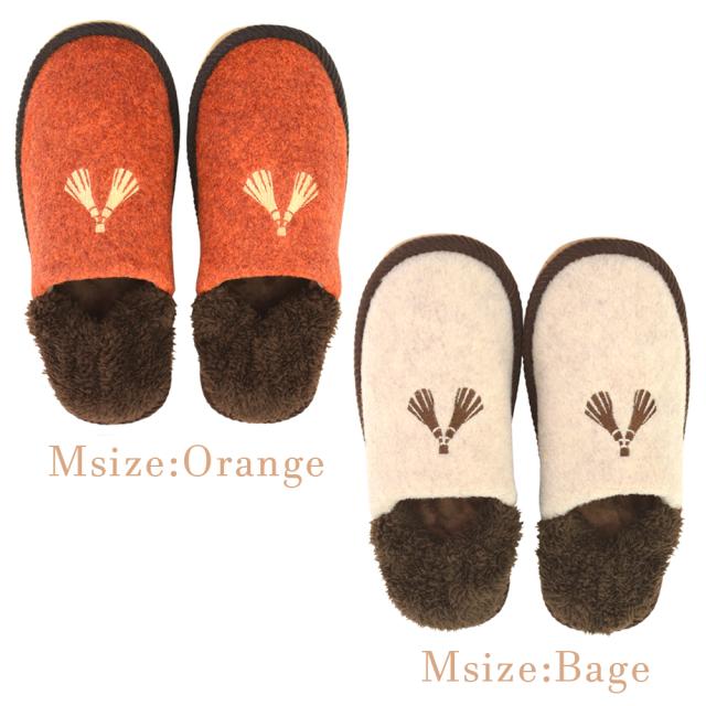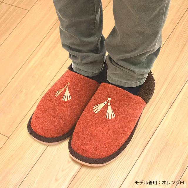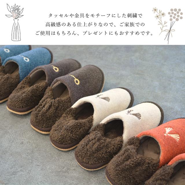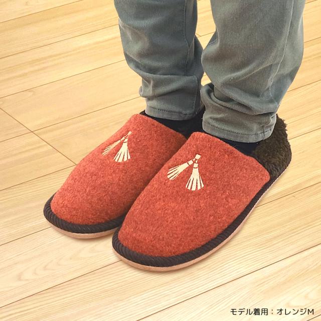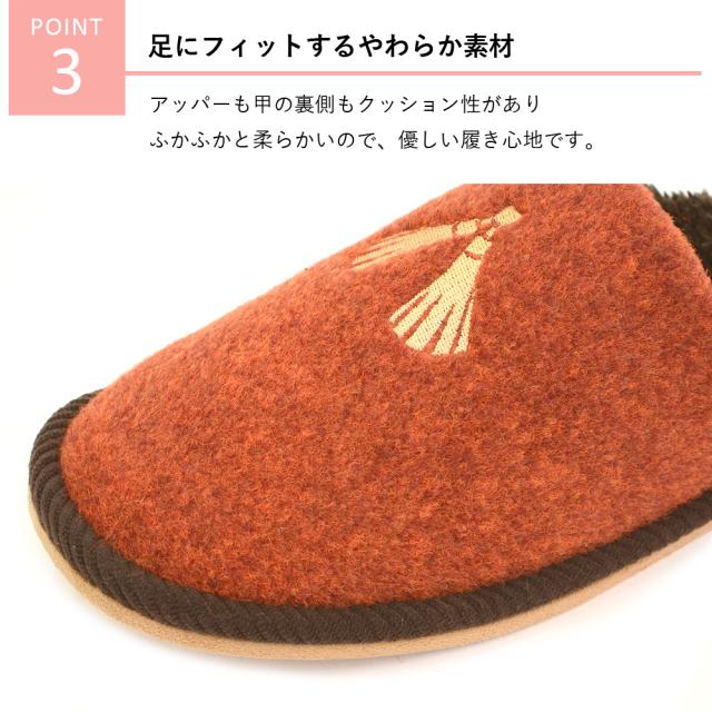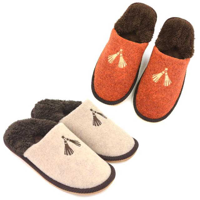 アッパーに毛足のあるフェルト地を使った、あたたみのあるスリッパです。