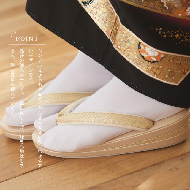 日本製 高級 帯地の鼻緒 フォーマル 3枚芯 本コルク 草履 レディース 選べる 4サイズ 2カラー S M L LL 市松 単品 金 銀 ゴールド シルバー フォーマル 結婚式 入学式 お宮参りバック シャンパンゴールド つや消しが高級 太めの鼻緒で痛くなりにくい