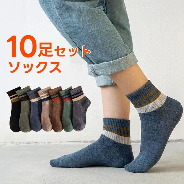 靴下 メンズ 10足セット 10足組 ソックス クルー ショート ボーダー シンプル スニーカーソックス アンクルソックス くるぶし コットン 綿 おしゃれ シンプル