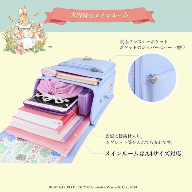 【商品レビューで+5%】ピーターラビット(TM) ランドセル Peter Rabbit(TM) キッズ 子ども 子供 女の子 入学 学校 新入学 小学校 1年生 A4 かばん 贈り物 大容量 キャラクター 刺繍 パステルカラー おしゃれ 可愛い 反射材 半かぶせ 半かぶせランドセル レインカバー 1123