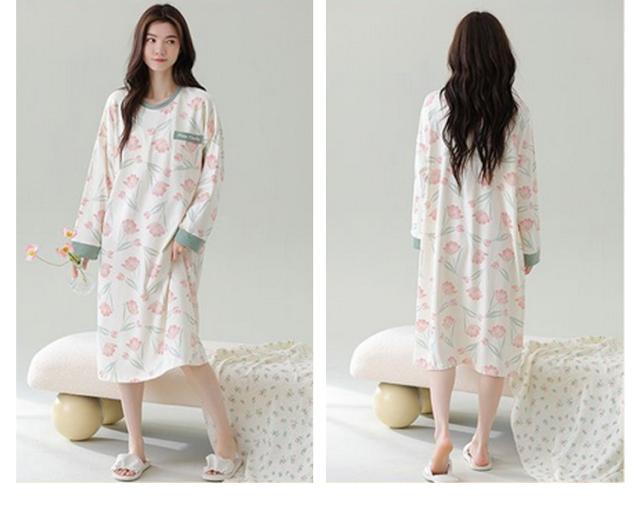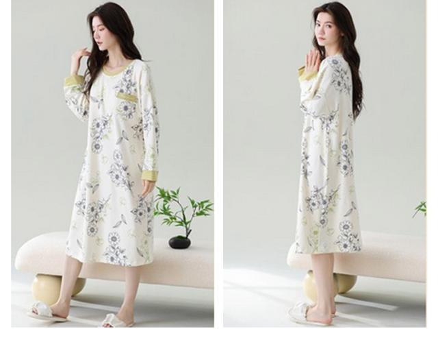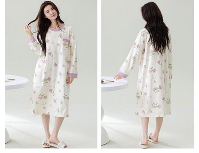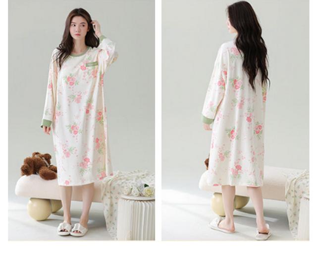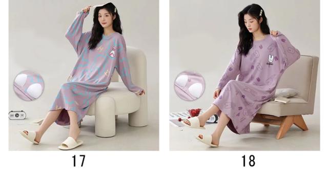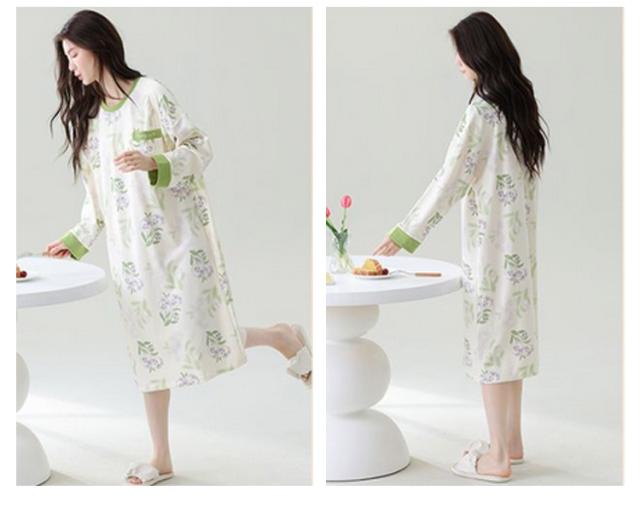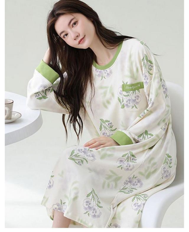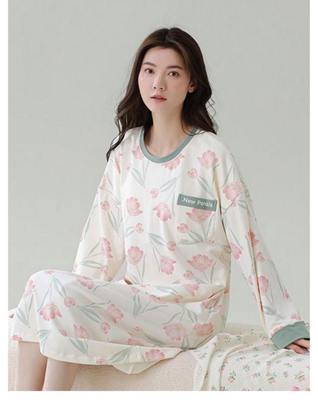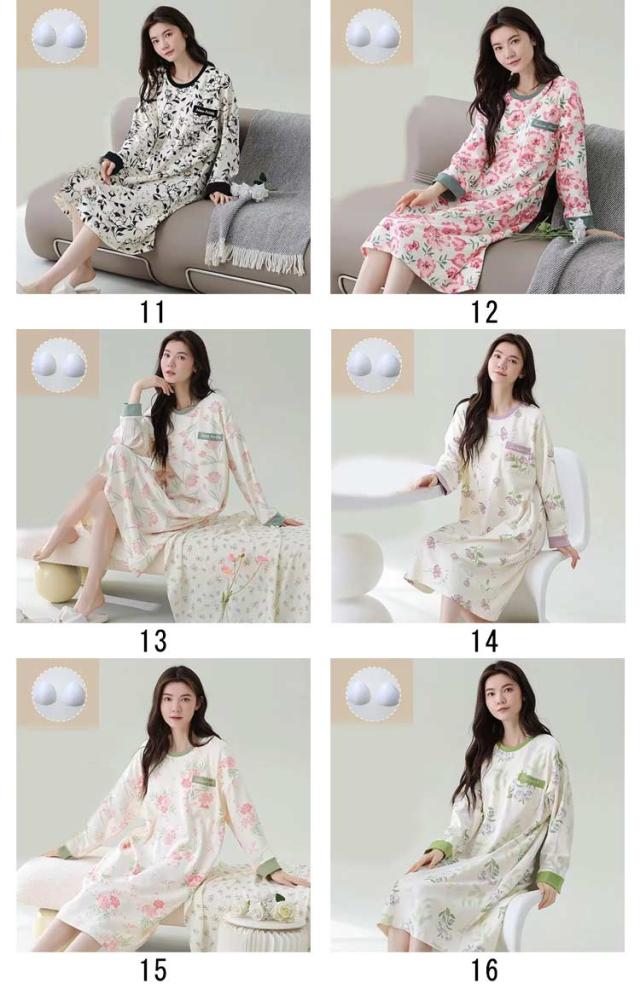 ルームウェア カップ付き ワンピース 長袖 パジャマ カップ付き クルーネック 部屋着 スウェットワンピース ロング ナイトウェア カップ付き ネグリジェ 柔らかい 総柄 寝間着 パジャマ 可愛い 秋 冬 春