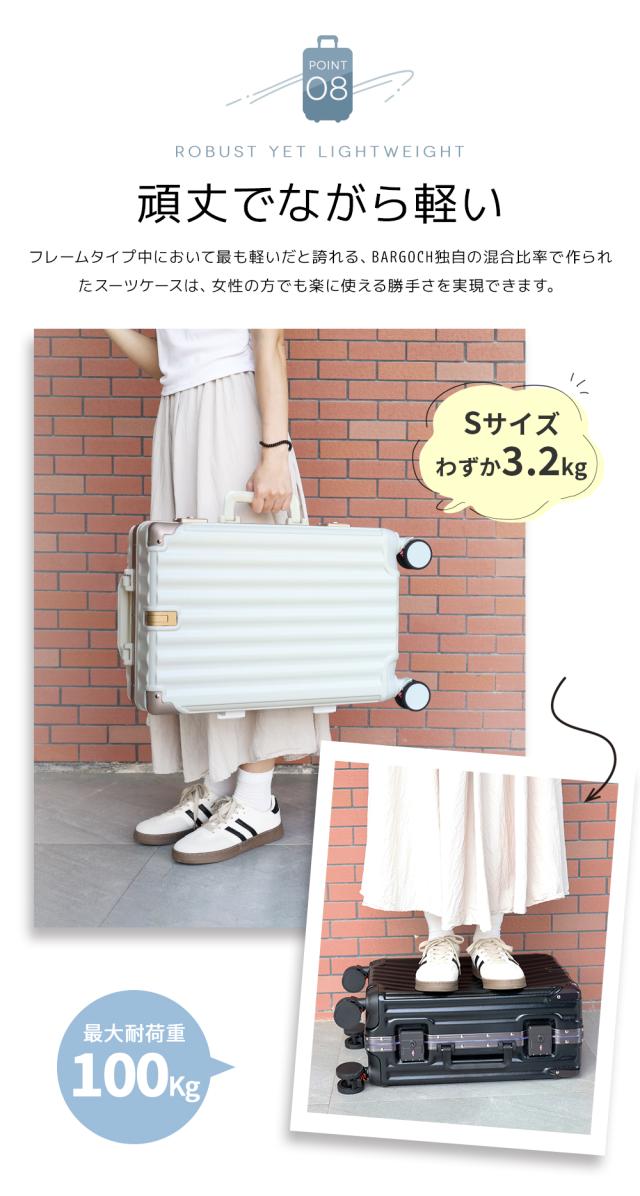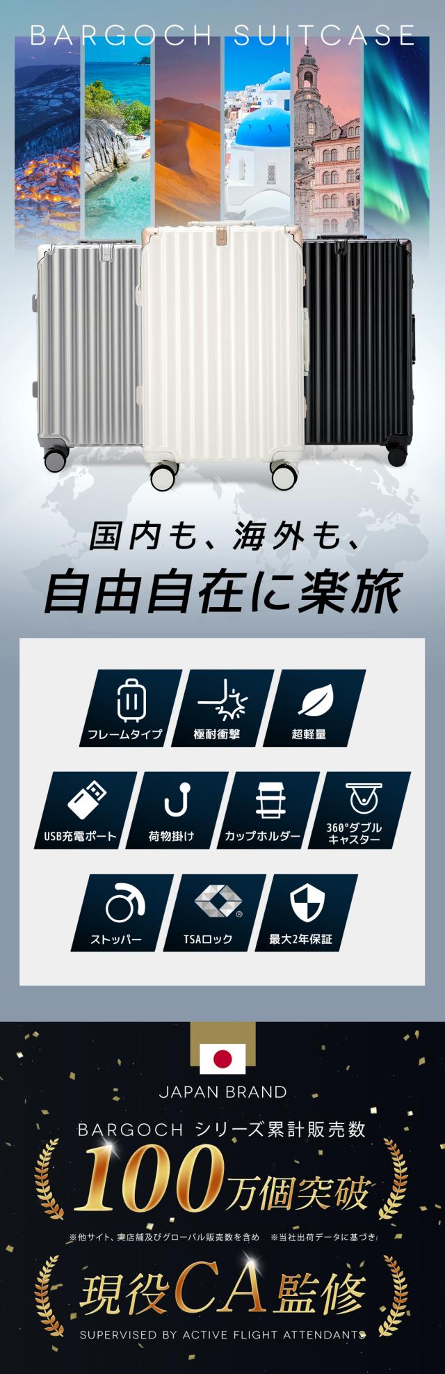 BARGOCH独自開発した最新スーツケース。アルミ合金製フレームタイプの構造で従来のファスナータイプより耐衝撃性能がさら一層アップします。