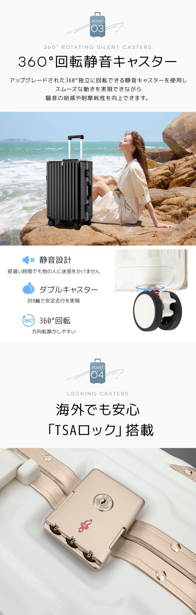 【キャスターカバー限定特典】スーツケース Sサイズ ストッパー付き 高級 USB充電ポート アルミフレーム 耐衝撃最強 静音カップホルダー フレームタイプ 軽量 キャリーケース ダイヤルロック