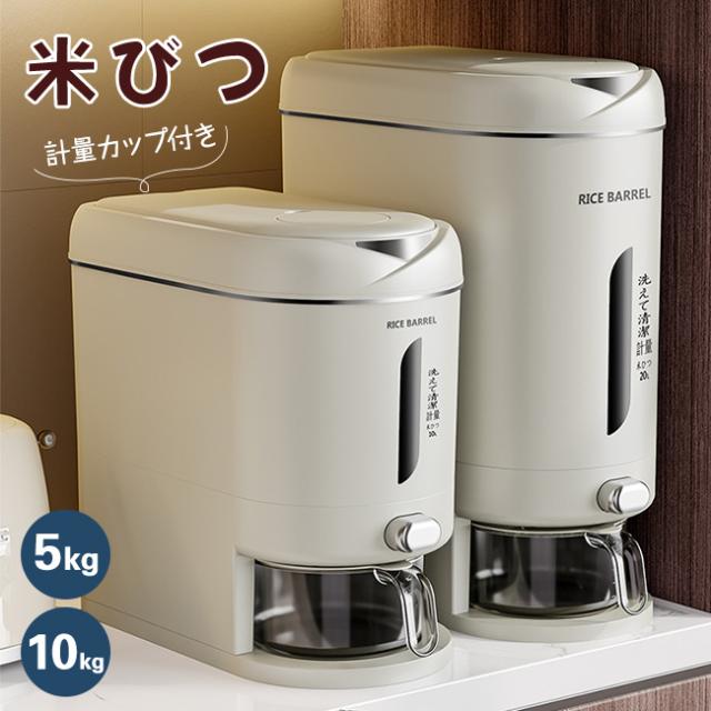 米びつ 5kg 10kg お米収納 2カラー スリム ボタン押しタイプ コンパクト 省スペース 米びつ 無洗米対応 ライスストッカー 米櫃 こめびつ