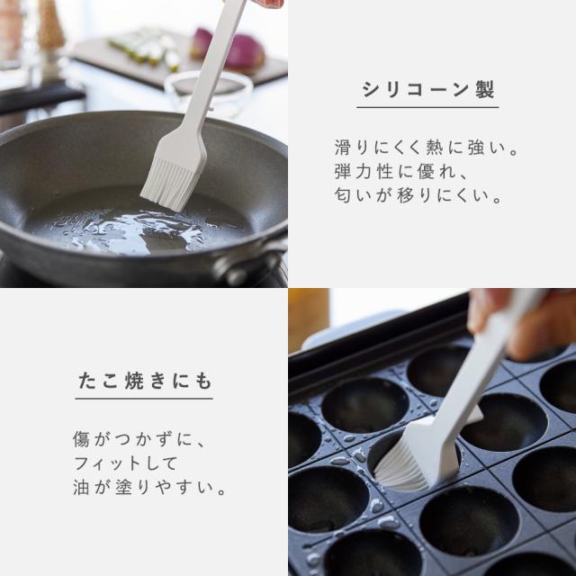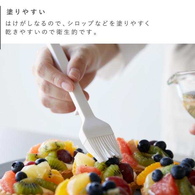 シリコーン製で滑りにくく熱に強い調理ハケです。ハケがしなるので、フライパンなどをキズつけません。お菓子作りや料理の食材を塗るのに最適なシリコーンハケ。先端が浮くので直置きにならずに清潔。食洗機OK。カラーは、ブラックとホワイトの2色をご用意致しました。