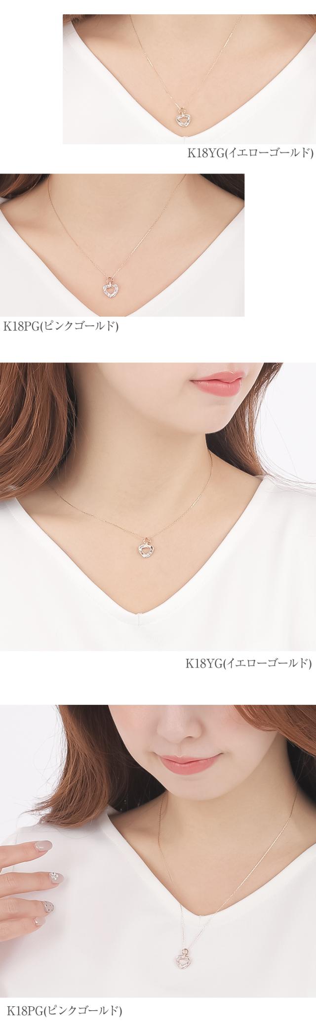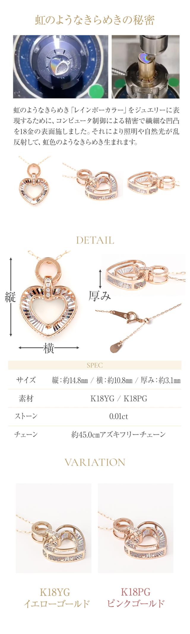 ダイヤモンド ネックレス K18 レディース ハート ピンクゴールド イエローゴールド ダイヤネックレス ダイヤ 金属アレルギー 18K 18金 ゴールド レインボーカラー 45cm ペンダント 華奢 シンプル ジュエリー アクセサリー 誕生日 女性 クリスマス プレゼント ギフト