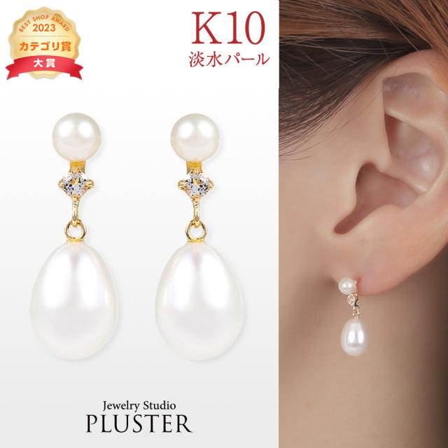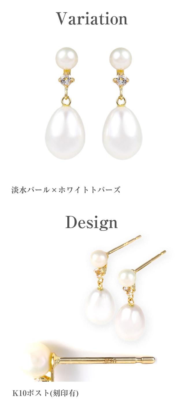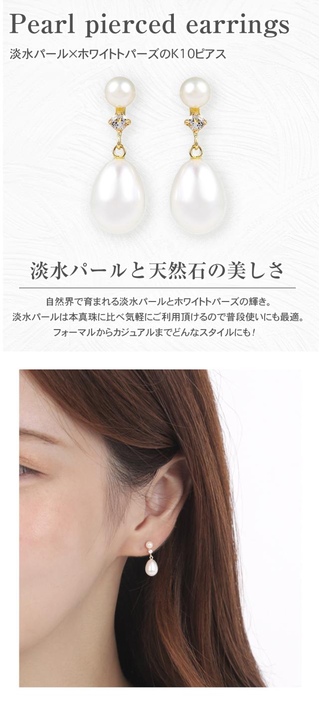 パール ピアス ぶら下がり レディース 金属アレルギー対応 一粒 結婚式 お呼ばれ 冠婚葬祭 普段使い パールピアス 真珠 本真珠 淡水パール 淡水真珠 ホワイトトパーズ 揺れる 10金 ニッケルフリー ジュエリー アクセサリー 誕生日 女性 クリスマス プレゼント ギフト